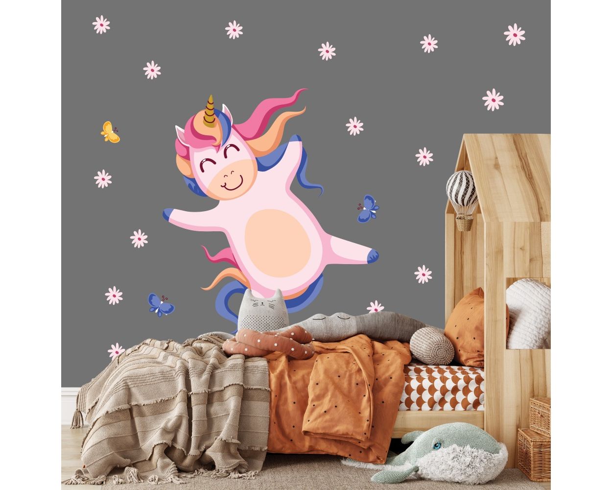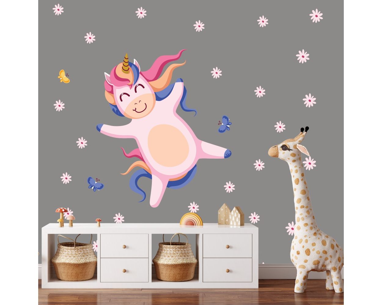 Unicorn with Flowers Wall Decal Stickers Fantasy Girls Bedroom Wall Art Cute Nursery is available to buy in increments of 1