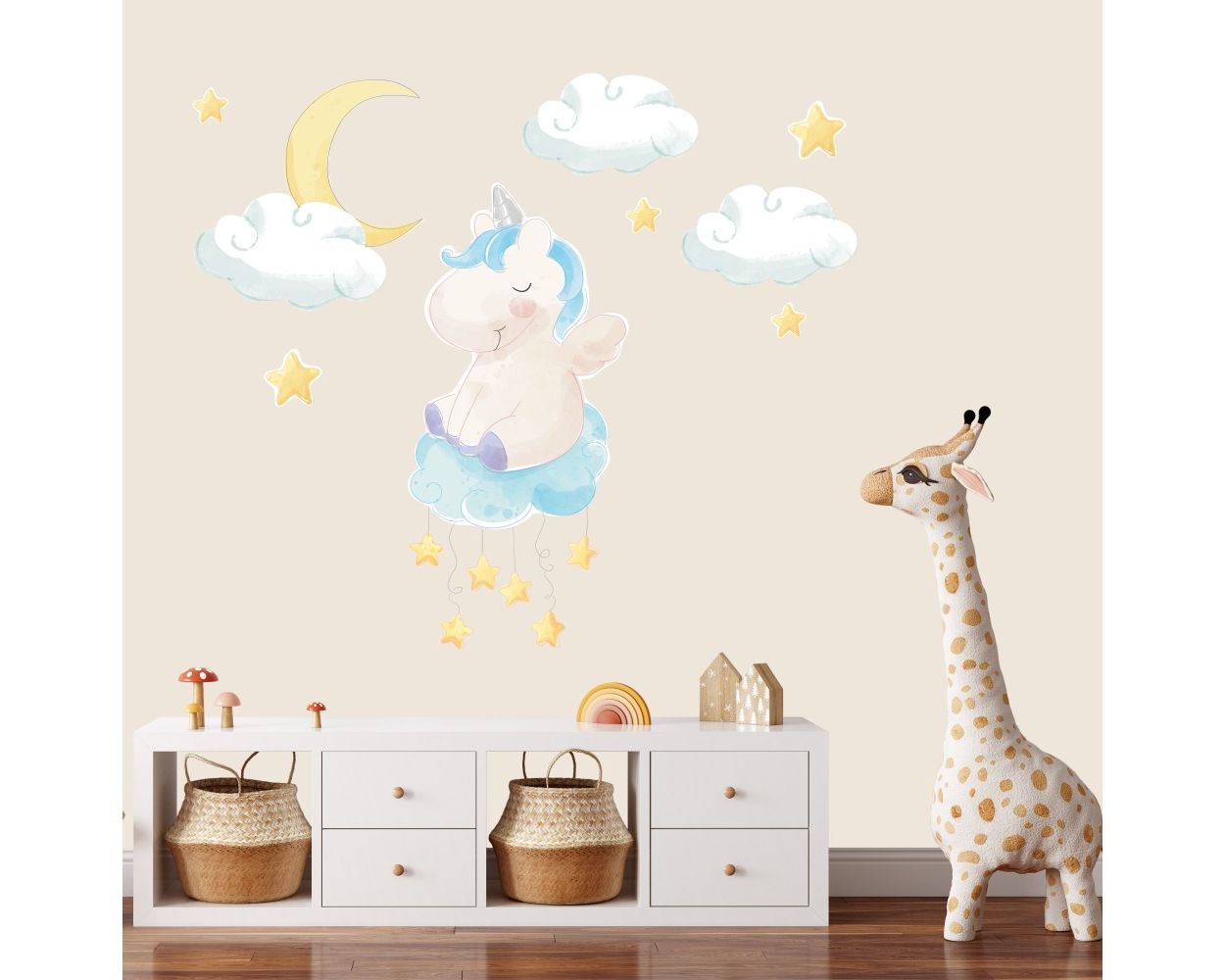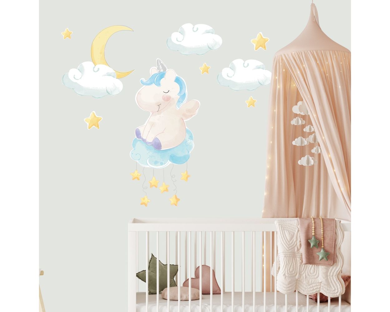 Watercolour Unicorn with Moon Wall Sticker Wall Decal Stickers Fantasy Girls Bedroom Wall Art Cute Nursery is available to buy in increments of 1